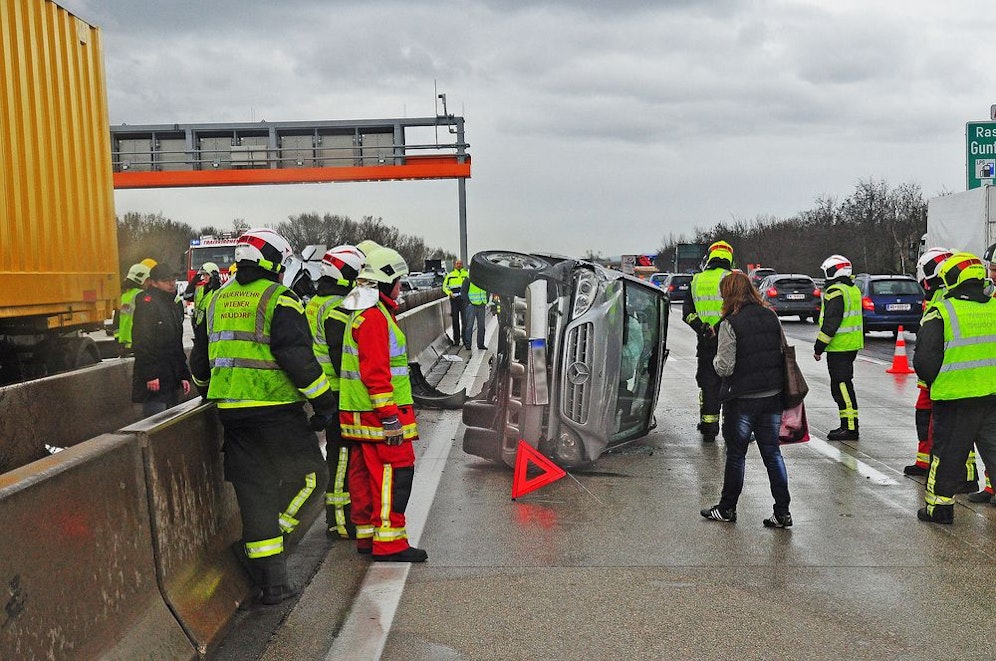 Die Karambolage ging glimpflich aus: Die beiden Ungarinnen und der Brummi-Fahrer konnten sich selbst aus den Wracks befreien. Sie wurden ins Krankenhaus gebracht. Die Feuerwehr schleppte den zerstörten Lkw mit einem Kranfahrzeug ab. Während der Aufräumarbeiten musste die Autobahn teilweise komplett gesperrt werden. Ein Mega-Stau war die Folge. In beiden Fahrtrichtungen stand der Verkehr bis zu zehn Kilometer still. Erst nach zwei Stunden normalisierte sich die Lage.