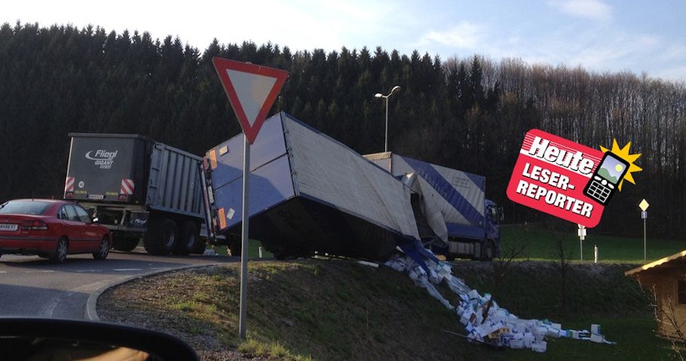 Der Fahrer des Lkws hat wohl den Kreisverkehr in Amstetten unterschätzt. Laut unserem Leserreporter ist das Fahrzeug wohl zu schnell gefahren. So kann man auch seinen Inhalt los werden.