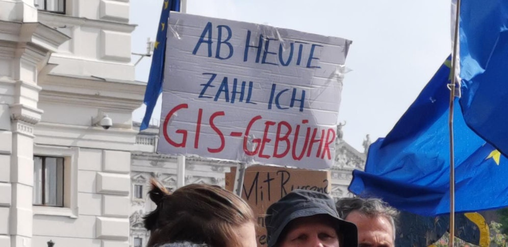 Am Ballhausplatz machen sich derweil Demonstranten für den ORF stark. "Ab heute zahl' ich GIS-Gebühr", prangt in bunten Lettern auf einem Plakat.