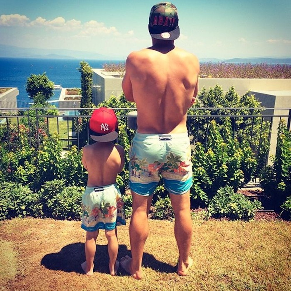 Auf dem Bild stehen Poldi Senior und Poldi Junior in zusammenpassenden Badeshorts stramm nebeneinander und beweisen eindrucksvoll, dass der Apfel in der Familie Podolski nicht weit vom Stamm fällt. Sohn Louis sieht nämlich wie eine Mini-Kopie seines berühmten Papas aus. Podolski schrieb zu dem Foto: "Meine Familie, mein Stolz, meine Nummer 1."