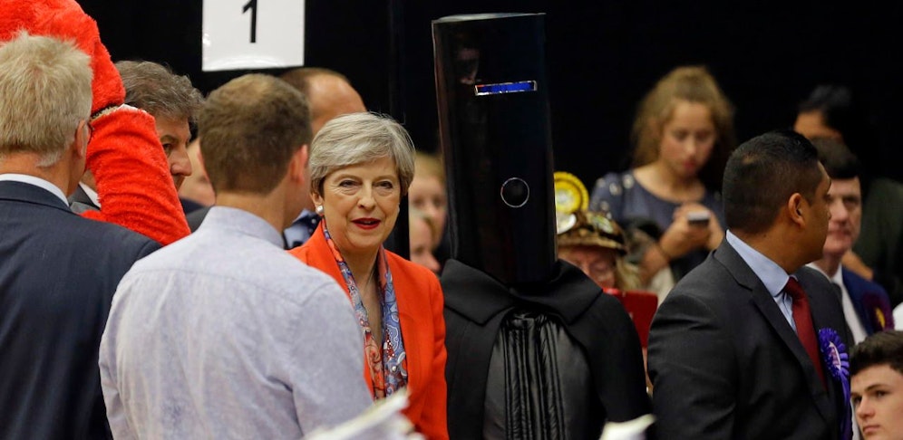 Einer der skurrilsten und gleichzeitig langlebigsten Politiker Großbritanniens ist zurück: "Lord Buckethead" ("Kübelkopf"). Der Satire-Politiker und selbsternannte "intergalaktische Lord" will bei den kommenden EU-Wahlen gegen den ehemaligen UKIP-Chef Nigel Farrage ins Rennen gehen. Dieser kandidiert nun mit seiner eigenen Brexit-Partei.