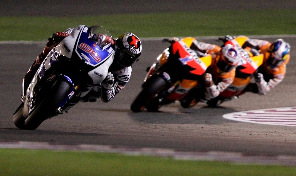 Jorge Lorenzo (ESP) gewann den WM-Auftakt der MotoGP in Katar vor Landsmann Dani Pedrosa. Weltmeister Casey Stoner (AUS) schleppte sich mit Krämpfen als Dritter ins Ziel. Valentino Rossi (ITA) enttäuschte auf ganzer Linie.
