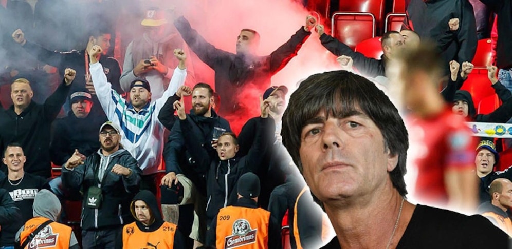 Deutschlands Bundestrainer Joachim Löw findet klare Worte zu den rund 200 deutschen "Fans", die beim WM-Quali-Spiel gegen Tschechien in Prag nach Spielende lautstark "Sieg Heil" skandierten.
