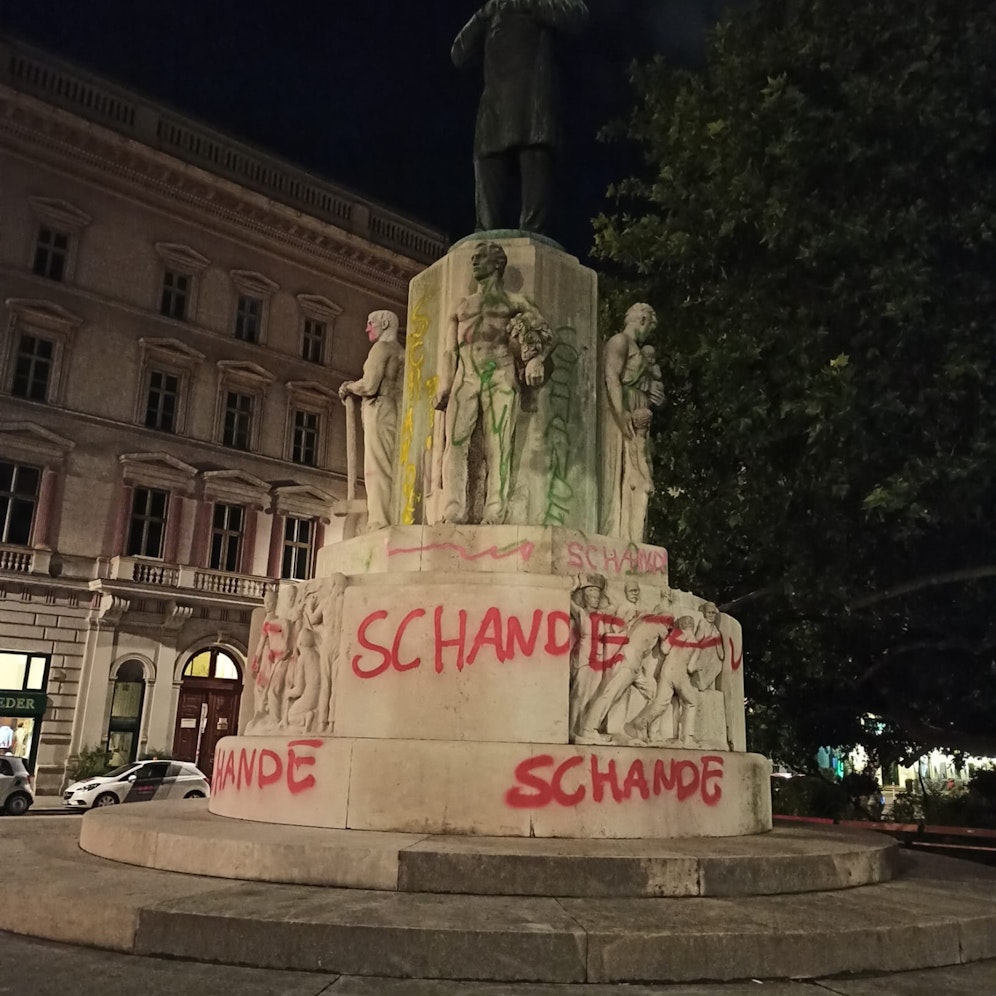 Am Wochenende wurde das Denkmal abermals beschmiert. Unbekannte sprühten das Wort "Schande" mehrmals auf den Sockel des Denkmals.