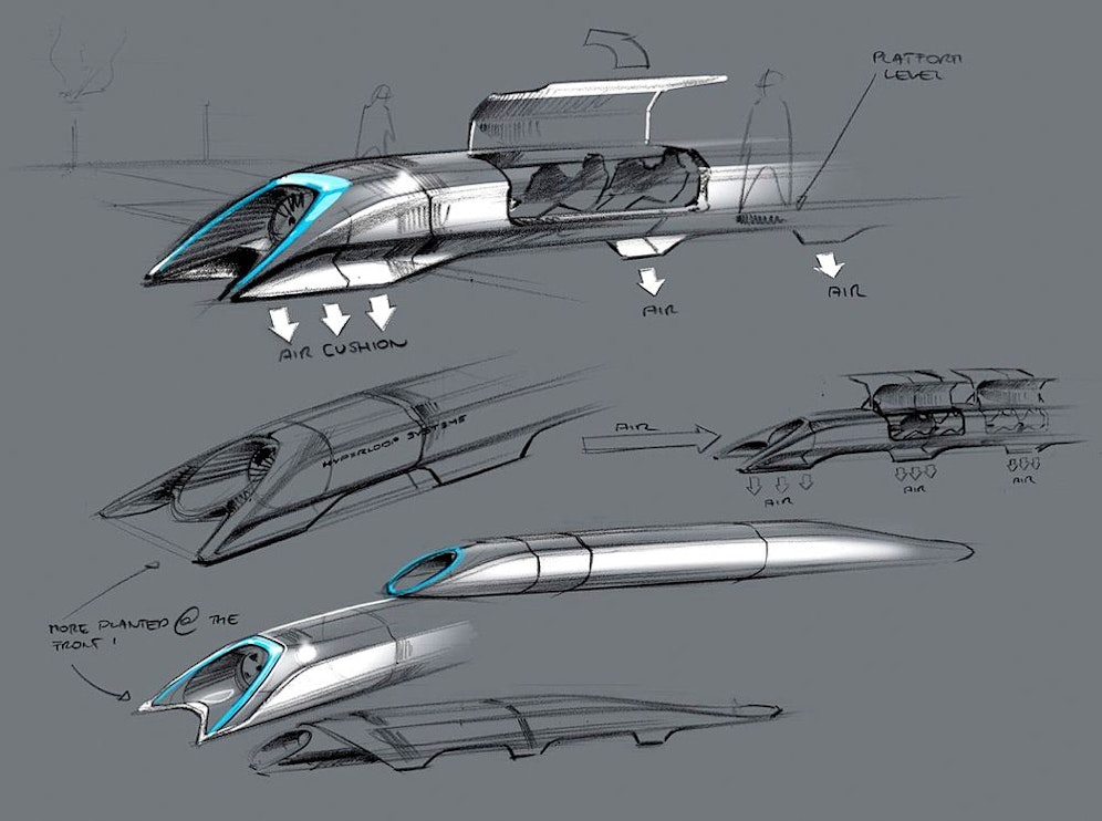 Eine Hyperloop-Kapsel soll 28 Leute fassen, alle 30 Sekunden soll eine neue Kapsel an einem der Bahnhöfe auf die Reise gehen. Die Kapseln sollen dabei auf 1.220 Kilometer in der Stunde beschleunigen. Um den bei diesem Tempo massiven Luftwiderstand zu verringern, soll der Druck in der Röhre abgesenkt werden und ein großer Propeller vorne an der Kapsel Luft "wegschaufeln".