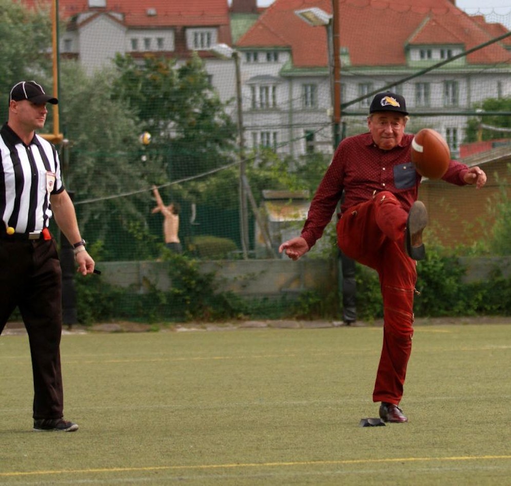 Baumeister ist neuerdings auf den Football gekommen! Beim Spiel der Vienna Knights gegen die Vienna Vikings II im Freizeitpark Schmelz übernahm der 83-Jährige jetzt den Ehren-Kick-off: "Den Mannschaftsgedanken 'United we stand' finde ich toll", schwärmte Vienna-Knights-Fan Lugner.