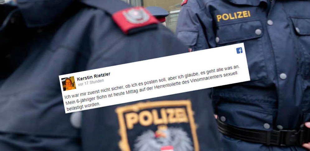 "Ich war mir zuerst nicht sicher, ob ich es posten soll, aber ich glaube, es geht alle was an", schreibt die Frau in den sozialen Netzwerken. "Mein 6-jähriger Sohn ist heute Mittag auf der Herrentoilette des Vinomnacenters sexuell belästigt worden.