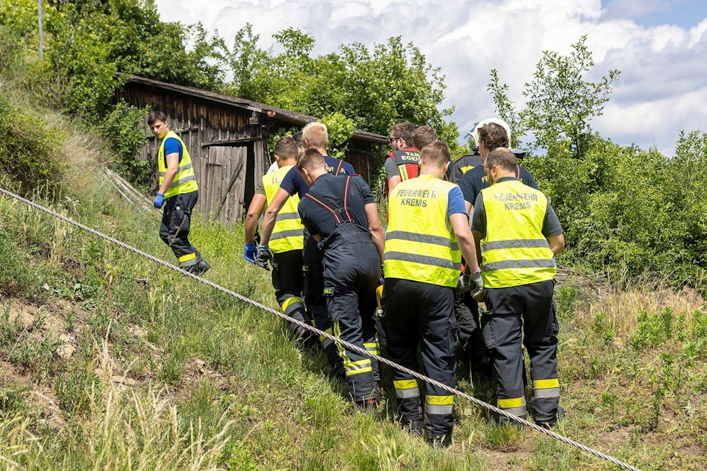 "Die letzten knapp 300 Meter galt es ohne Fahrzeug zu überwinden. Beim Eintreffen an der Unfallstelle war der Rettungsdienst bereits beim Patienten und das zeitgleich mit der Feuerwehr eingetroffene Notarztteam konnte leider nur noch den Tod des unter dem Traktor eingeklemmten Lenkers feststellen", berichtet die Feuerwehr Krems.