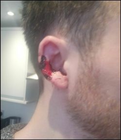 Der 24-Jährige musste mit einem tiefen Riss in der Ohrmuschel ins Krankenhaus eingeliefert werden.