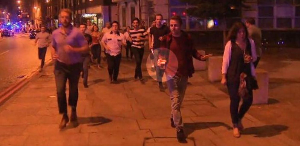 Die trotzigen Londoner haben in einem jungen Mann, der auf einem Video vor den Terroristen flieht, den perfekten Ausdruck britischer Unerschütterlichkeit gefunden. Während die Menschen um ihn herum zum Teil in Panik davonrennen, spaziert der junge Mann seelenruhig mit einem immerhin noch halbvollen Bierglas davon.