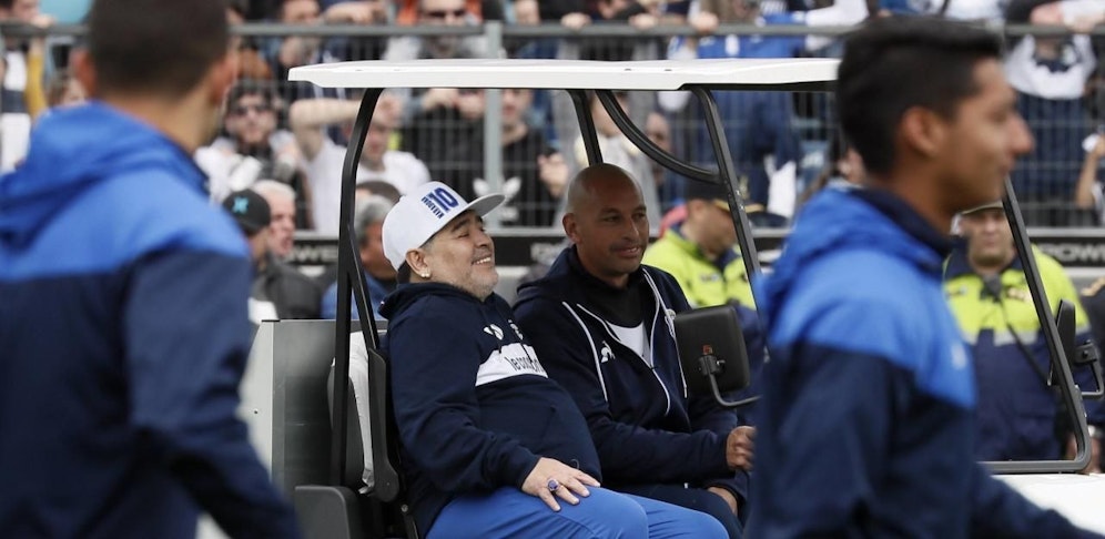 Maradona ist der Heilsbringer im Golfwagerl für den argentinischen Klub, der mit nur einem Punkt aus den ersten fünf Spielen Letzter ist. Seit der Bekanntgabe des Maradona-Engagements hat der Verein 2.200 neue Mitglieder.
