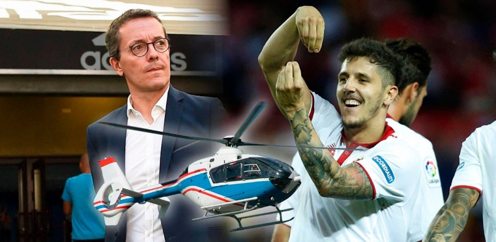 Der Boss von Olympique Marseille sitzt im Hubschrauber neben Stefan Jovetic - und erklärt diesem, dass ein gewisser Jovetic schon bald bei OM unterschreibt.