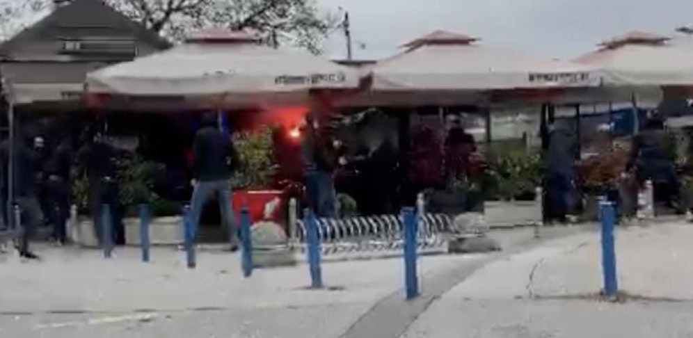 Ein Video eines Passanten, das von "24Sata" veröffentlicht wurde, zeigt die wüsten Szenen. So ist klar zu erkennen, wie sich einige Randalierer Sessel und Tische schnappten und diese auf ihre Gegenüber warfen. Auch ein Bengalo wurde offenbar gezündet.