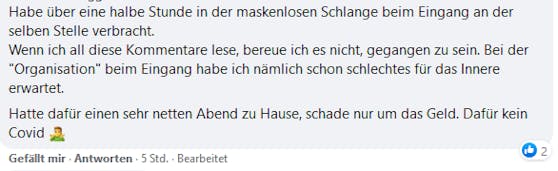"Hab mich so auf Solomun gefreut, weil er ein richtig cooler DJ ist!! Aber, die Veranstaltung war sowas von unorganisiert!! Eingänge komplett überfüllt, viel zu wenig Personal, eeeeewig lange Schlangen, egal ob beim Eingang oder bei den Getränken. 3G wurde nicht richtig kontrolliert...", schreibt eine Tirolerin in einem Facebook-Posting. "DANKE, NIE WIEDER! Extra 5h von Innsbruck angereist", beendet sie ihr Wut-Posting. Viele der Fans schildern den lange ersehnten Konzertabend ähnlich.