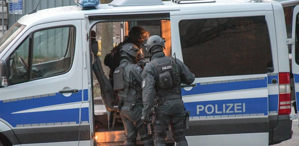 Bei den Durchsuchungen, an denen 180 Einsatzkräfte beteiligt waren, wurden Bargeld, Hieb- und Stichwaffen sowie Datenträger beschlagnahmt.