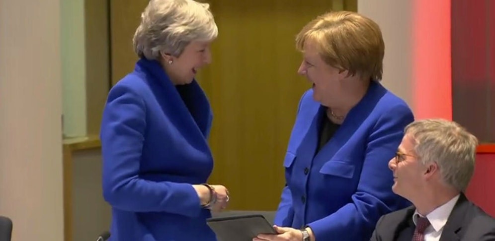 Schon monatelang beschäftigt der Brexit die europäische Politelite, nicht zuletzt in der EU-Hauptstadt Brüssel. Aber beim Sondergipfel am Mittwoch sorgte die Bundeskanzlerin für einen heiteren Moment.