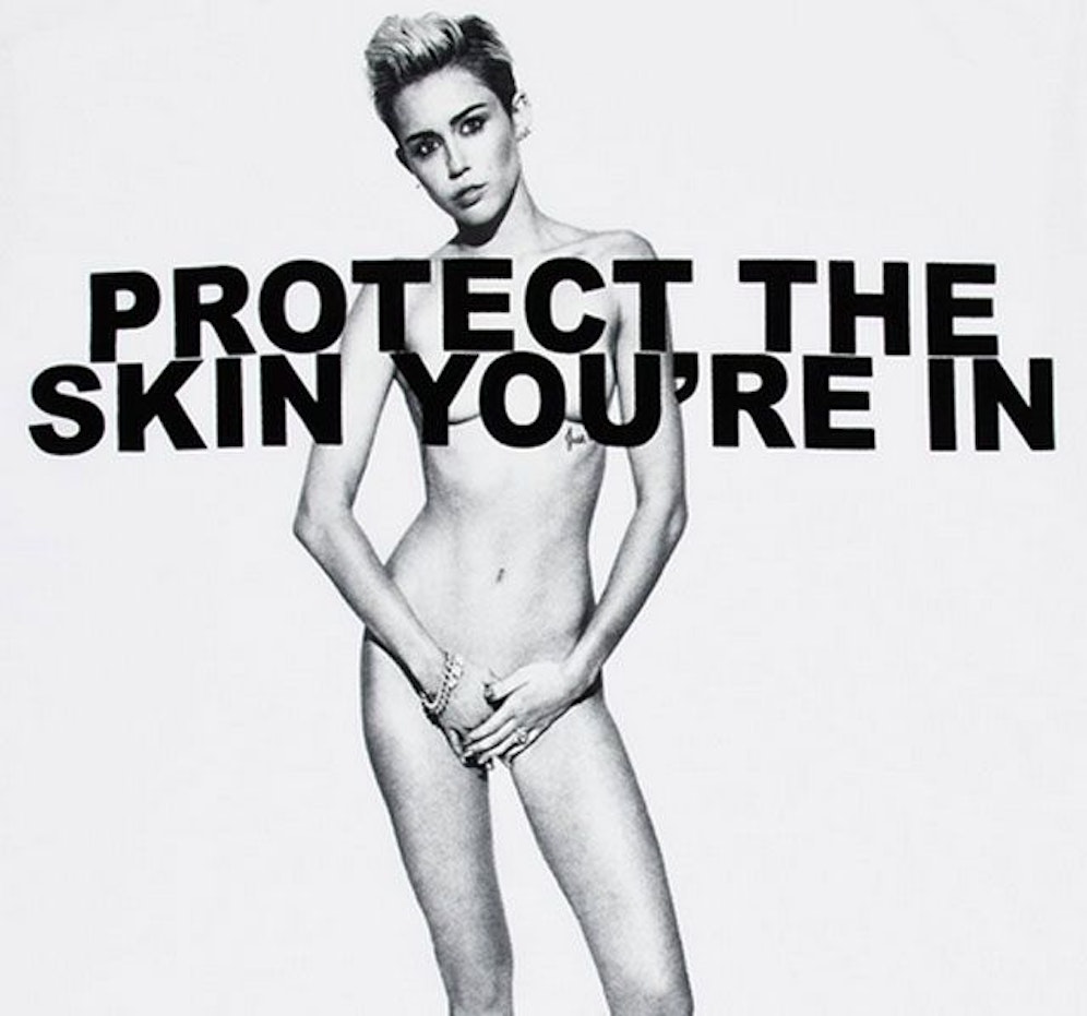 Was Stars nicht alles für den guten Zweck tun: Für eine Kampagne gegen Hautkrebs ließ Miley Cyrus alle Hüllen fallen. Die nackte Miley Cyrus gibt es als T-Shirt zu kaufen. Die Einnahmen gehen an ein Krebsforschungsinstitut.