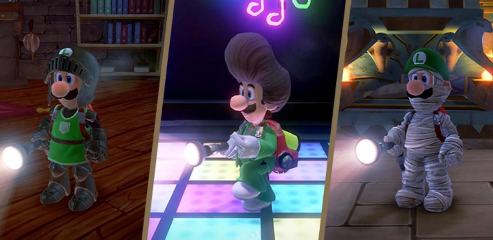 Optisch wird Luigi nun mit drei neuen Kostümen verändert. Der grüne Klempner kann sich nun als Mumie, als Ritter und als unseren Favorit "Groovigi" verkleiden. Letzterer scheint einem Diskofilm der 80er Jahre entsprungen und bewegt sich im Game auch leicht tänzelnd fort. Ein Lacher über viele Stunden!