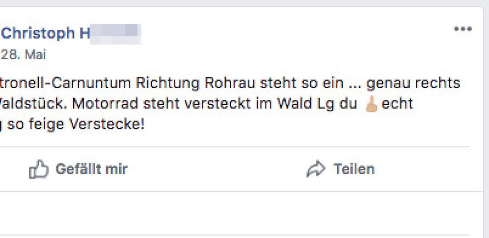 50 Euro Strafe muss Christoph H. (26) aus Hainburg (NÖ) blechen, weil er sich in einer Facebook-Gruppe über eine versteckte Radarfälle ärgerte und seinen Beitrag mit einem Mittelfinger-Emoji versah – "Heute" berichtete.