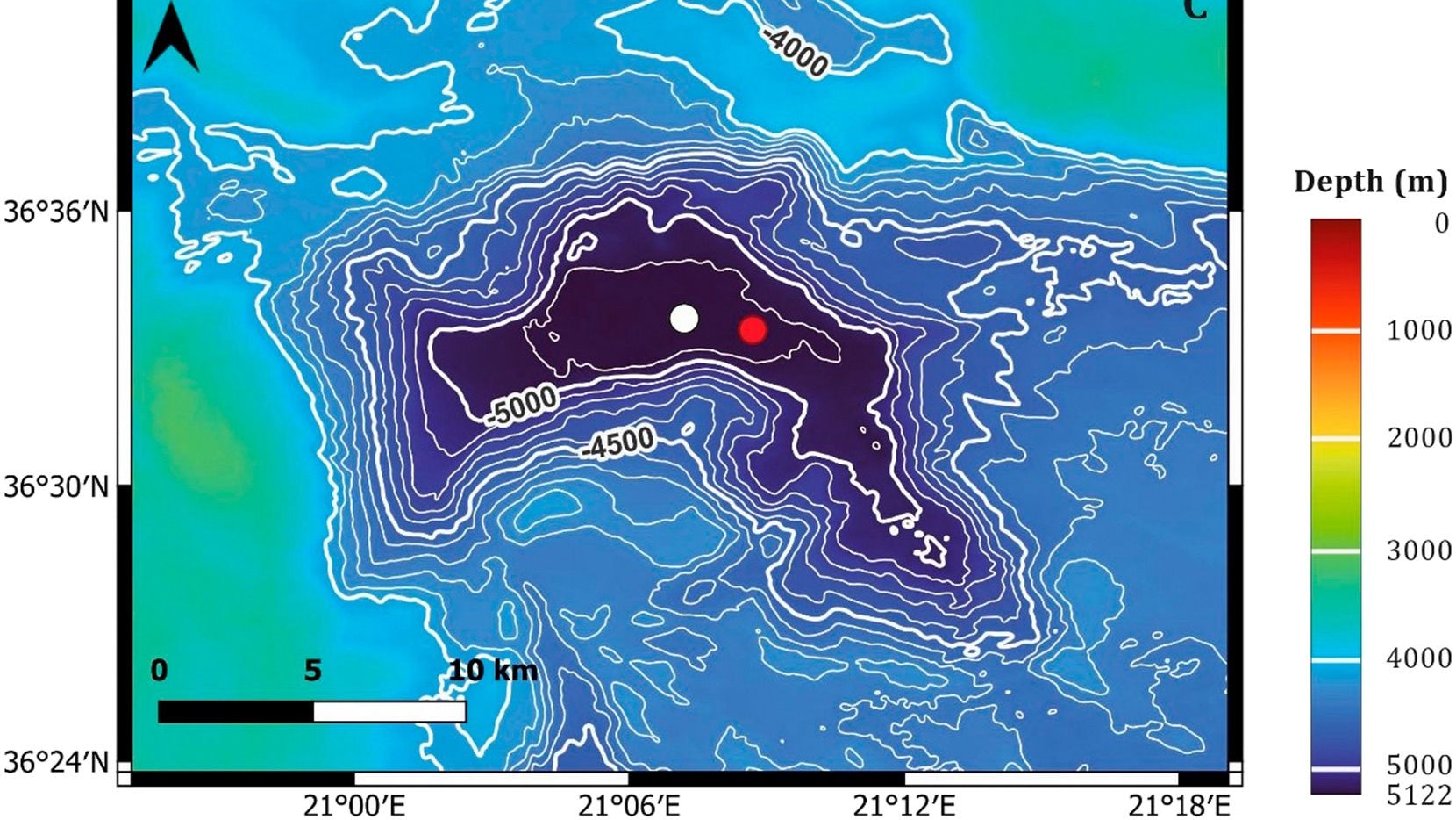 Die internationale Forschergruppe erreichte den 5.122 Meter tiefen Punkt im Ionischen Meer, etwa 65 Kilometer südwestlich der griechischen Insel Ithaka. Der Bereich ist geologisch aktiv und liegt zwischen der afrikanischen und der eurasischen Platte. Die Expedition wurde von der Universität Barcelona begleitet, wie das Nachrichtenmagazin "Focus" berichtet.