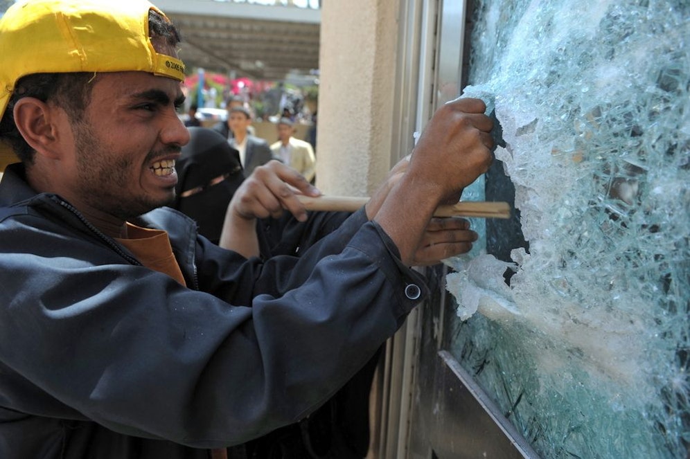Nach den Freitagsgebeten bewarfen erste Demonstranten in Kairo Polizisten mit Steinen. Die Sicherheitskräfte stellten sich den aufgebrachten Ägyptern in den Weg, um die US-Botschaft zu schützen. Sie versuchten, die Demonstranten mit Hilfe von Tränengas zurückzudrängen. Im Jemen bewachten Sicherheitskräfte die Straßen.
