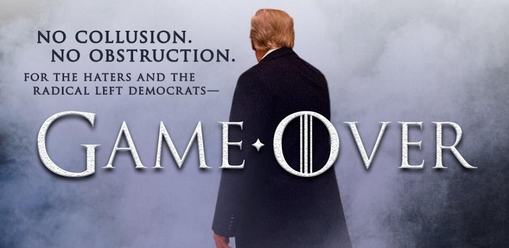 Trump reagierte triumphierend auf die Pressekonferenz. "Das Spiel ist vorbei", schrieb der Präsident in einer im Kurzbotschaftendienst Twitter veröffentlichten Fotomontage, die ihn mit dem Rücken zur Kamera vor dichtem Nebel zeigt. "Keine Absprache. Keine Behinderung", hieß es darin zu den beiden wichtigsten Verdachtsfeldern, denen Mueller nachgespürt hatte. Der Stil der Fotomontage erinnert an die Fernsehserie "Game of Thrones".