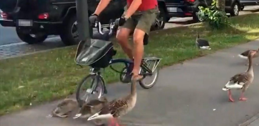 Der vergangene Donnerstag in München. Die Sonne scheint, Pasanten schlendern auf der Straße – so auch eine Gänsefamilie. Dann nähert sich ein Radfahrer und brettert direkt durch die Tiergruppe.