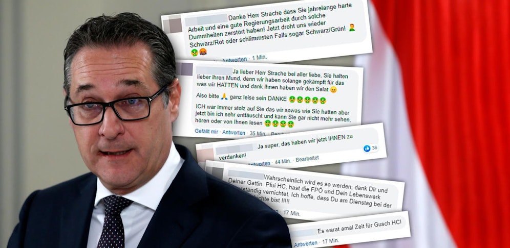 "Strache Du schwachkopf das hast Du zu verantworten..." "Ich bin blau....nur komm nie mehr in die Politik zurück......von dir hat sich sogar unser lieber Jörgel distanziert!" "Sich die Taschen voll tropfen und jetzt noch reden still sein HC." "Du Strache bist das letzte eines FPÖ Politiker, an allem Schuld und hoffentlich kommst in Knast dafür, den der schaden was du Österreich zugefügt hast ist unglaublich." "Hätte Strache Charakter, würde er noch heute seinen Austritt aus der FPÖ erklären!" "Ernst wird es nur ... weil du dich im Suff nicht zurückhalten konntest und auch noch dachtest das Steuergelder dein Eigentum sind!"