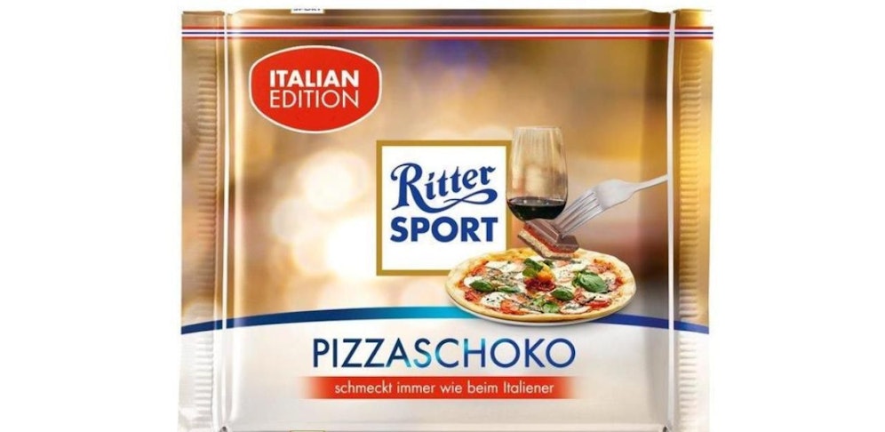 "Schmeckt immer wie beim Italiener" steht auf der Schokoladentafel. Geschmacksrichtung: Pizza. Damit erheiterte Ritter Sport bis dato mehr als 7.000 seiner Facebook-Fans. Der Post wurde 971 mal geteilt und sogar von Dr. Oetker selbst bemerkt.