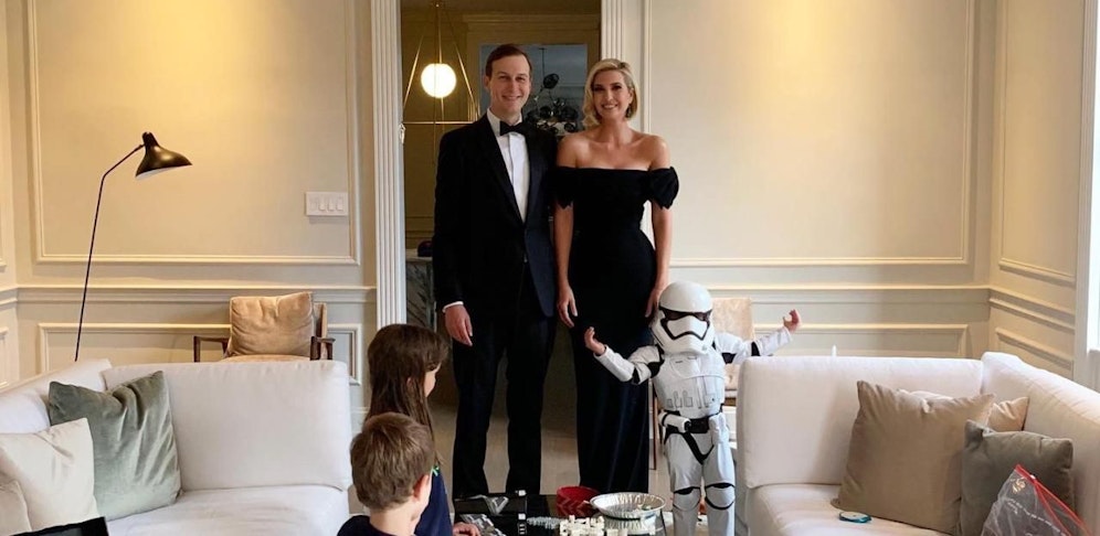 Auf Twitter postet die 37-jährige Tochter von US-Präsident Donald Trump ein Wohnzimmer-Foto von sich, ihrem Mann Jared Kushner (38) und den gemeinsamen Kinder. Eines ihrer Kinder ist dabei als Storm Trooper verkleidet, dem Sturmkrieger aus der "Star Wars"-Saga.