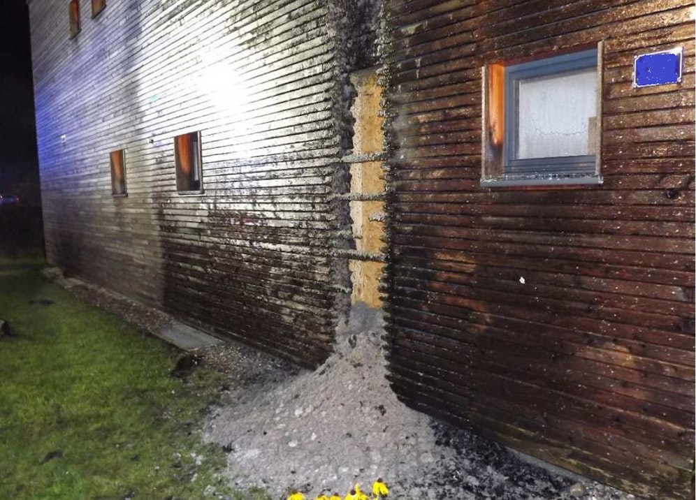 Bei einem Vollbrand eines Hauses in Rankweil wurden Nachbarn in der Nacht auf Donnerstag um 2 Uhr zu Lebensrettern. Sie wurden auf das Geschehen aufmerksam und weckten die im Haus befindlichen Personen, nachdem ein Abschnitt der Außenfassade auf der Straßenseite des Fertigteilhauses in Flammen stand.