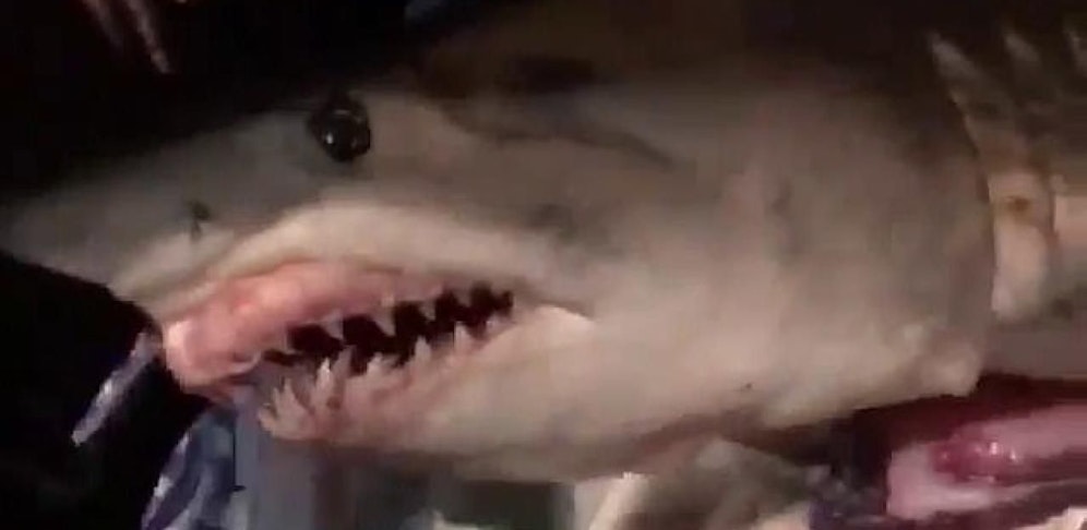Im Web tauchte jetzt ein skurriles Video auf: Der Clip zeigt das fahrende Auto eines Fischers, das ein Boot zieht. Auf dessen Rückfront baumelt ein Hai.