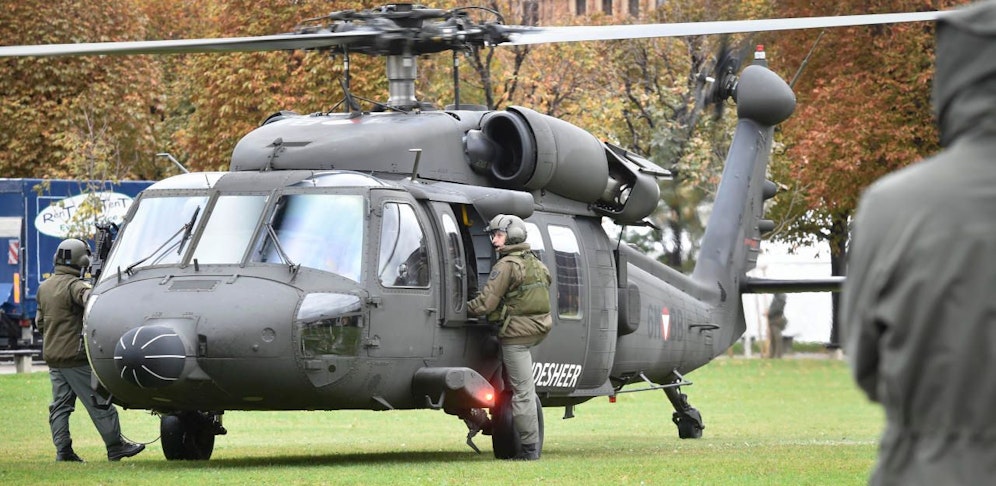 Mit der Ladung des S70 "Black Hawk" wurden die letzten Aufbauarbeiten für die traditionelle Informations- und Leistungsschau des Bundesheeres anlässlich des Nationalfeiertages am 26. Oktober fortgeführt.