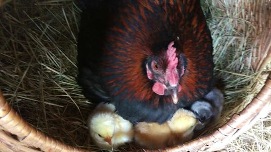 Hahn, Henne und Küken alle mal im Nest der Mutter geboren und nur mit der Nestwärme (ohne Strom - ohne Brutkasten) gewärmt. Wie ehrlich und herrlich doch die reine Natur ist!