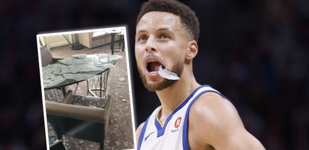 NBA-Superstar Steph Curry ist ein lustiges Missgeschik passiert. Der Point Guard der Golden State Warriors übte in seinem Hotelzimmer ein paar Gold-Schläge und zertrümmerte dabei die Einrichtung.