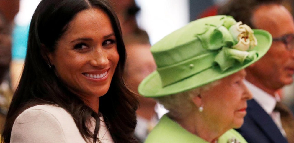 Kaum ist Prinz William nicht dabei, schon hält sich die frischgebackene Herzogin von Sussex an alle royalen Stilregeln: Bei ihrem ersten Auftritt alleine an der Seite von Queen Elizabeth II. zeigte Herzogin erstmals nicht ihre nackten Schultern, sondern hatte in einem beigen Wollkleid mit kurzem Cape aus dem Hause Givenchy alles richtig gemacht.
