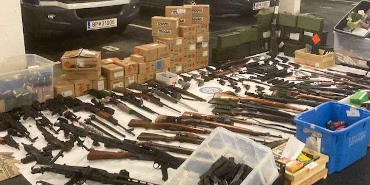 Unter anderem befanden sich dabei Kriegsmaterial in Form von zwei Maschinengewehren, sechs Maschinenpistolen, ein Sturmgewehr, ein Scharfschützengewehr, Ersatzläufe und Verschlüsse für Maschinengewehre, Schusswaffen der Kategorie A (Pumpgun, Schusswaffen mit angebrachten Schalldämpfer) 17 Schusswaffen der Kategorie B (Revolver und Pistolen), 23 Schusswaffen der Kategorie C (Langwaffen, Gewehre, Flinten und Büchsen), verbotene Waffen (16 Schalldämpfer, 21 sogenannte „Schießende Kugelschreiber“, Schlagringe), Waffenteile sowie eine große Anzahl verschiedener Hieb- und Stichwaffen, Pfeffersprays, Elektro-Schockgeräte, asiatische Nahkampfwaffen.
