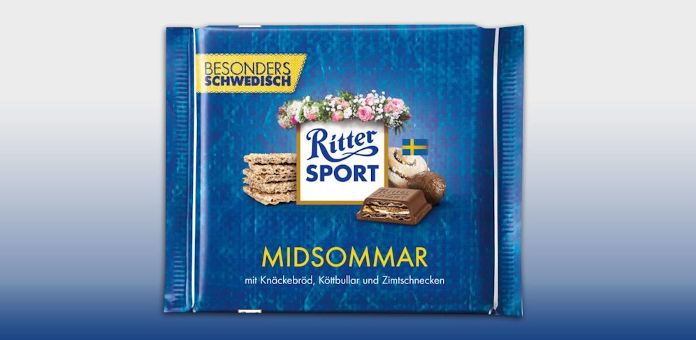 Das schwedische Möbelhaus startet um diese Zeit jedes Jahr eine "Midsommar"-Aktion. Ritter Sport griff das auf und präsentierte eine gleichnamige Schokolade mit "Knäckebrot, Köttbullar (Fleischbällchen, Anm.), und Zimtschnecken". Wohl bekomm's!