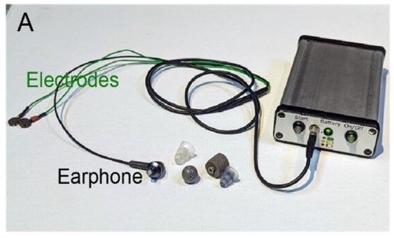 "Die Teilnehmer bekamen ein tragbares Gerät, um es zu Hause zu benutzen", erklärt sie in einer Mitteilung der Universität. Die Studienautoren teilten die Probanden nach dem Zufallsprinzip in eine von zwei Gruppen ein. Eine Gruppe und Probanden behandelte man rein akustisch. Eine zweite erhielt über Elektroden, die auf der Haut entweder über dem Schläfenbein oder den obersten Halswirbeln platziert wurden, Mini-Stromstöße.