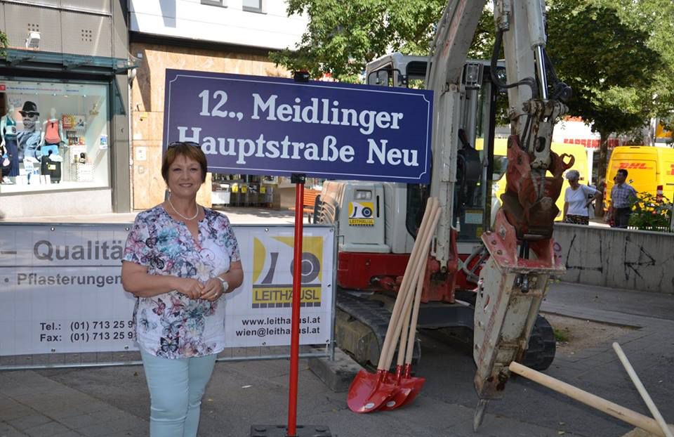 Bezirksvorsteherin des 12. Bezirks Gabriele Votava (SPÖ) während der Sanierungsarbeiten auf der Meidlinger Hauptstraße im Jahr 2016:
