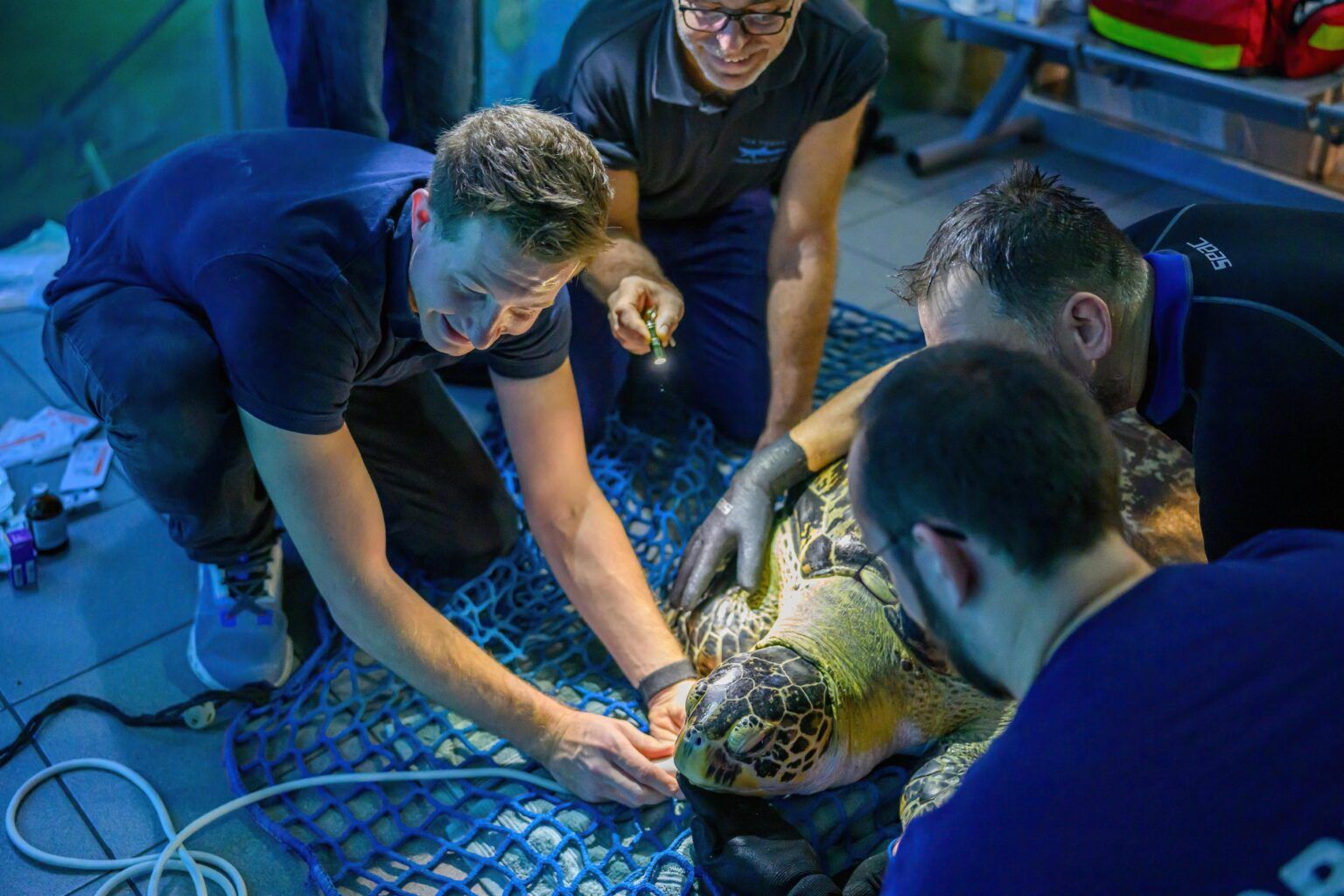 Die berühmte Meeresschildkröte "Puppi" bekam kürzlich sogar einen Hausbesuch: Der Tierarzt kam mit dem Ultraschallgerät direkt zu ihrem Becken.