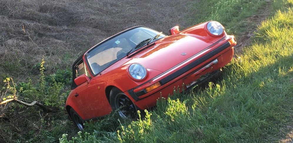 Aus bisher ungeklärter Ursache war ein Porsche-Fahrer von der Fahrbahn abgekommen und mit dem Sportwagen im Straßengraben gelandet.