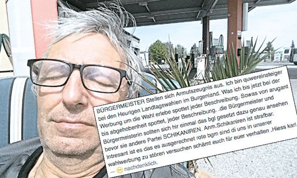 Egal ob "Heurige Landtagswahlen" oder "arugant" – mit seiner Beschwerde über arrogante Parteien im Wahlkampf hat der blaue Spitzenkandidat im Bezirk Oberpullendorf (Burgenland), Karl Hiess, blitzartig Bekanntheit erlangt.