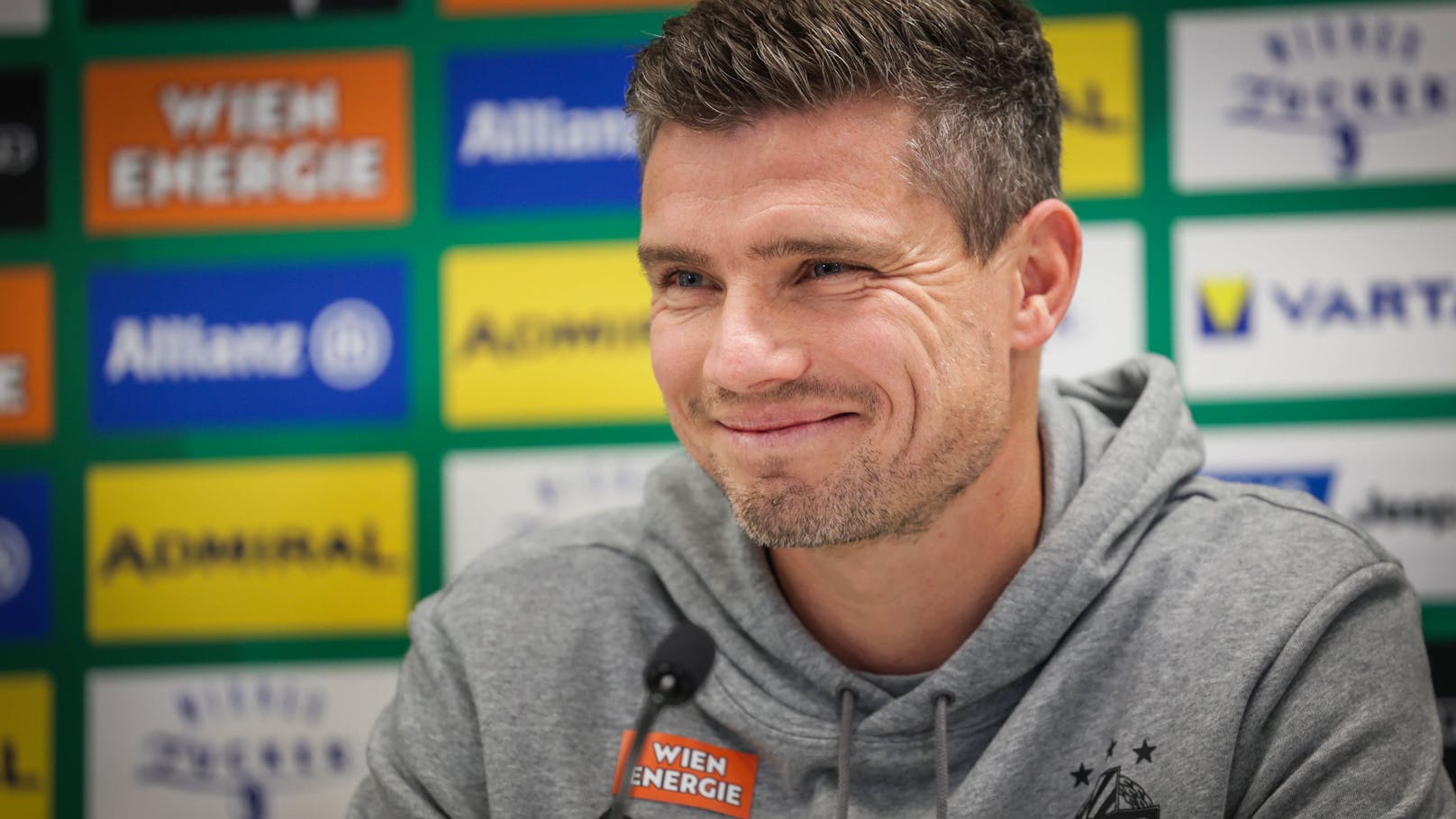 Die Stimmung im Presseraum des Allianz Stadions war nach diesem "Eisbrecher" gelöst. Klauß, 38-jähriger Nachfolger von Zoran Barisic, berichtete in der Folge, warum er in Hütteldorf bis Sommer 2026 unterschrieben hat.