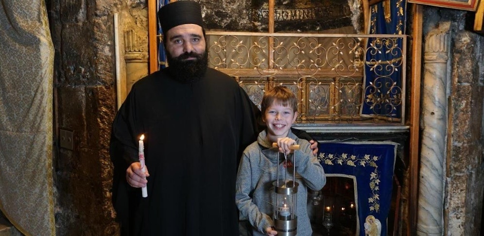 Im 2.500 Kilometer entfernten Betlehem hat am Mittwoch der 11-jährige Niklas aus Vorchdorf in der Geburtsgrotte das "ORF-Friedenslicht" entzündet.