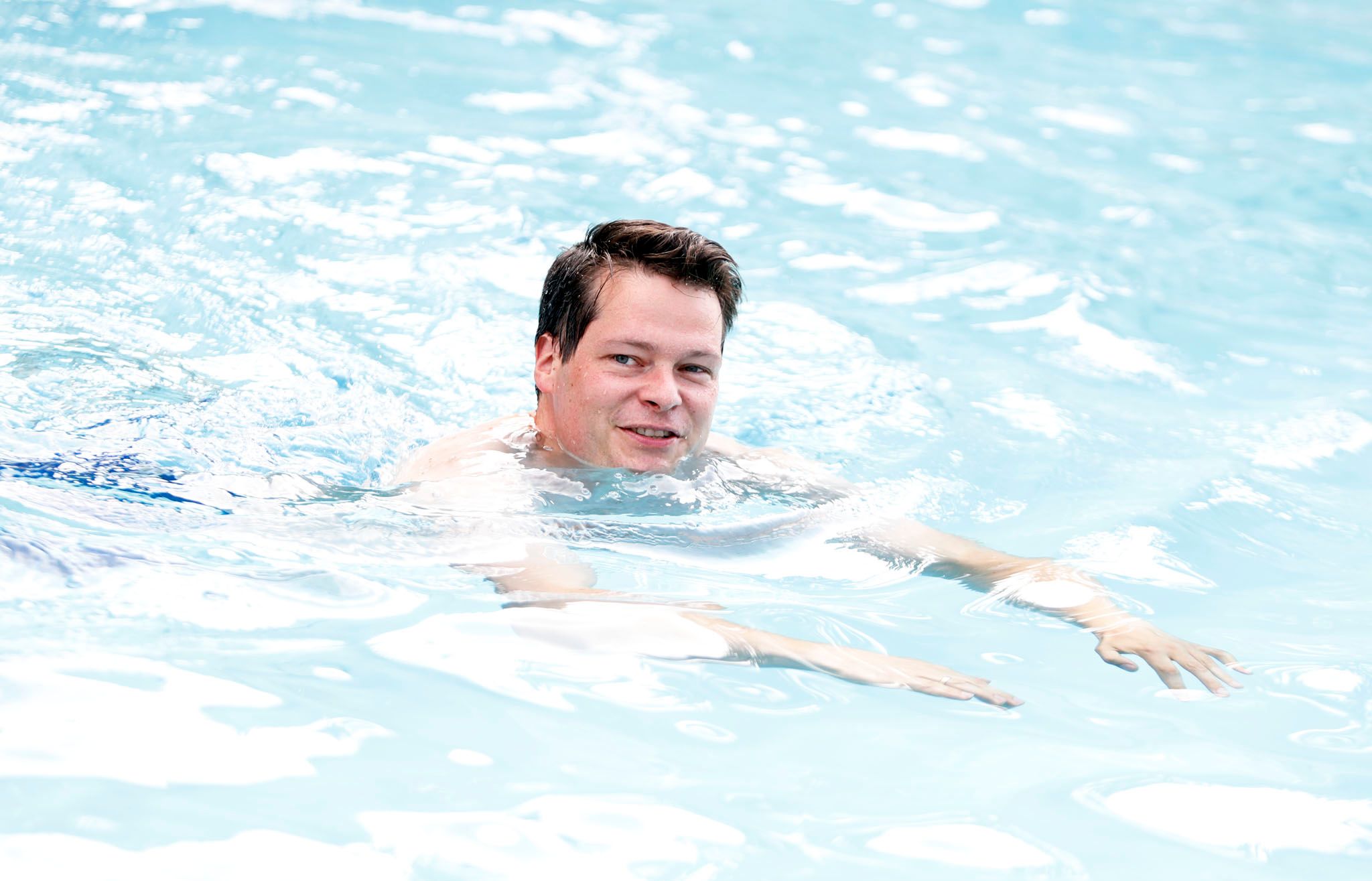 "Richtig schwimmen können, ist wichtig", erklärt Bäderstadtrat Jürgen Czernohorszky und zeigt gleich vor, wie es geht: