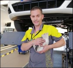 „Der kleine Stubentiger hat wirklich Verstecken mit uns gespielt. Zum Glück hat er sich aber in letzter Minute doch noch gemeldet", lacht ÖAMTC-Techniker Christian Kotik. „Als ich nach der Katze im Radkasten greifen wollte, hat sie sich aber wieder versteckt und ist weiter in den Motorraum gekrochen." Clubtechniker Christian Kotik montierte also Verkleidungen ab, bis er endlich den Stubentiger erwischen und unversehrt befreien konnte.