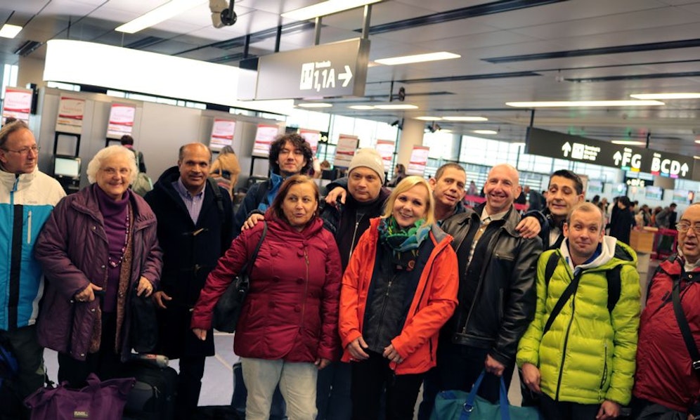 "Ich bin noch nie geflogen und schon sehr aufgeregt. Ich freue mich wie ein kleines Kind, den Papst zu sehen", sagt Markus (45), der auf der Straße gelebt hat. Gemeinsam mit 20 anderen Obdachlosen wartete er Donnerstagfrüh auf den Flug nach Rom.
