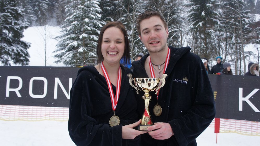 Sie ging als einzige Frau an den Start und durfte am Ende über Platz eins jubeln – Katrin H. (26) aus Gosau war beim "Kronehit Nackt-Slalom" am Dachstein für die männliche Konkurrenz eine Nummer zu groß.