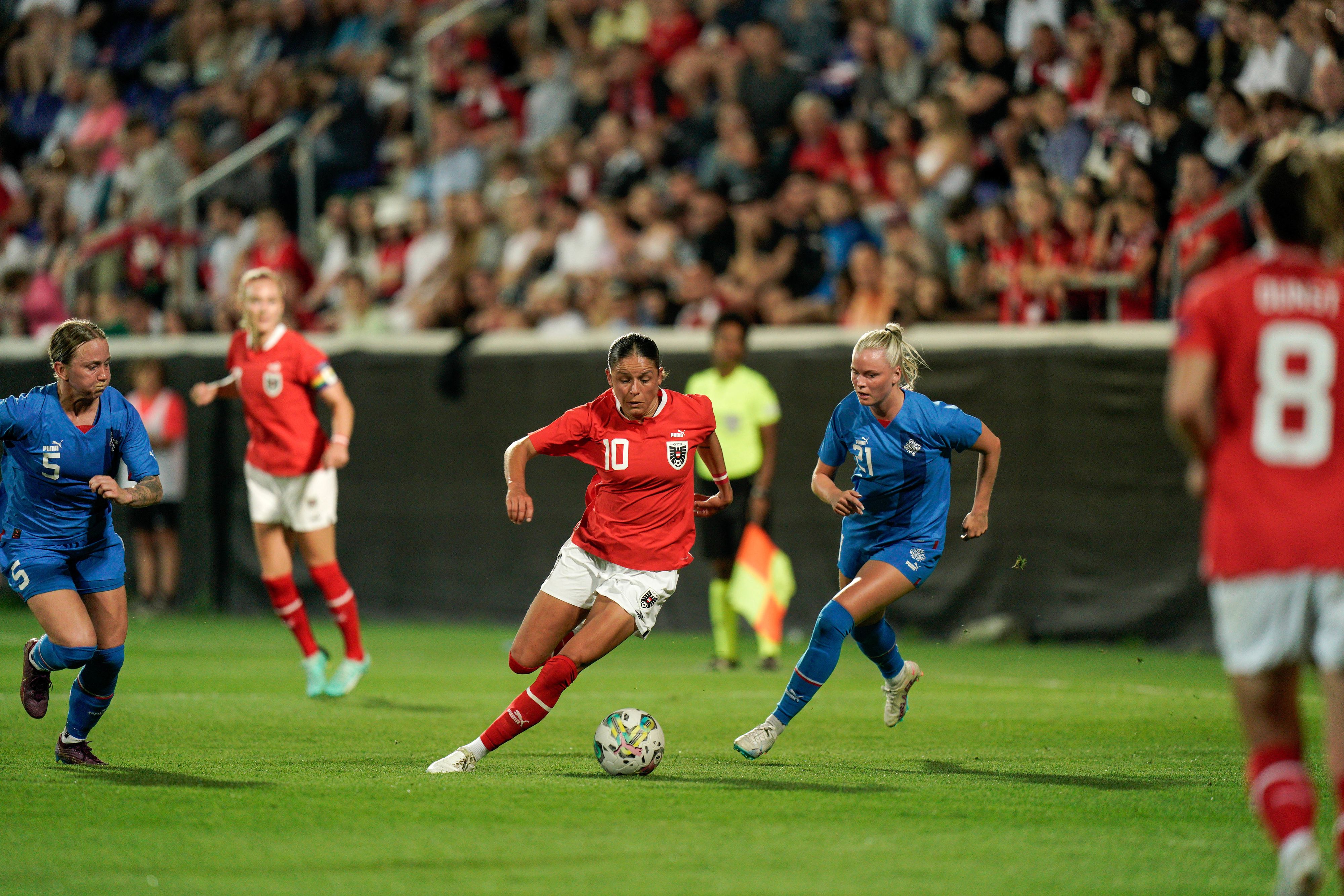 Vor 2.300 Zuschauern hielten Manuela Zinsberger und Co. in Wiener Neustadt lange ein 0:0 gegen Island. Die Gastgeberinnen, die stark ersatzgeschwächt antraten, fanden auch die besseren Chancen vor – standen am Ende aber doch mit leeren Händen da.